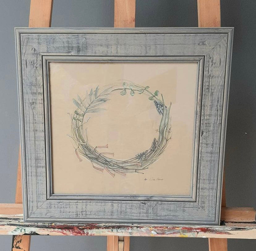 Mixed media Botanical drawing by Lina Varna, watercolours and pencil, 40cm/45cm solid wood frame, hand painted and waxed.